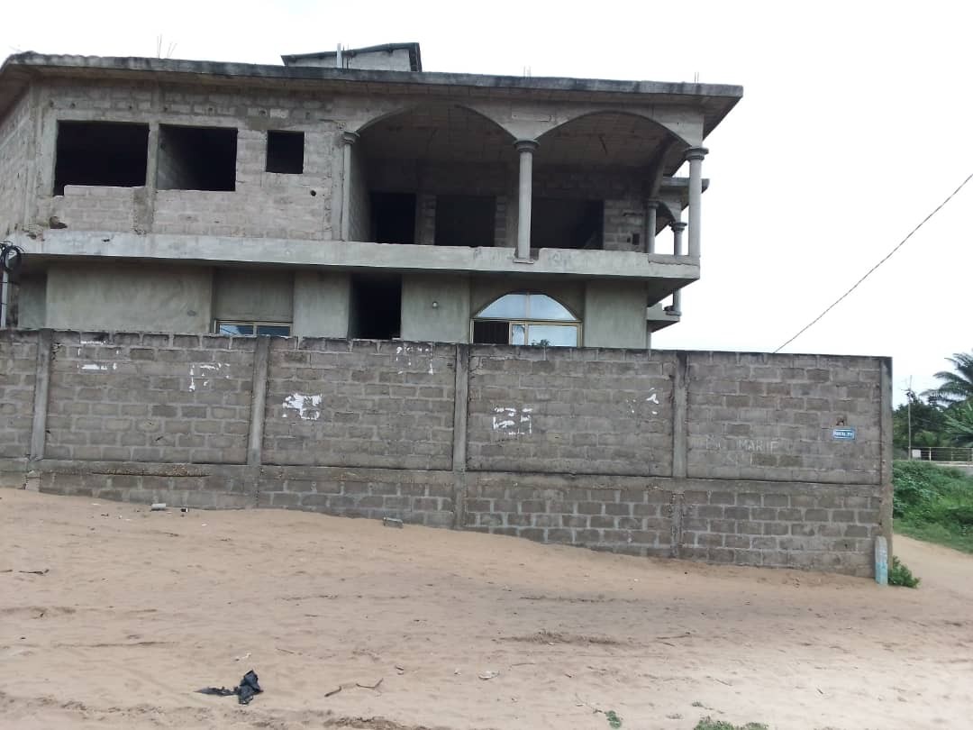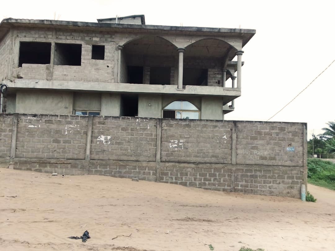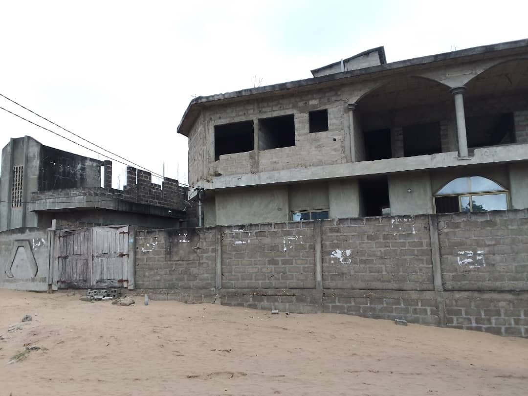 Cette spacieuse maison non meublée de 400 mètres carrés est située à Cotonou plus précisément dans le quartier de Fidjrossè Akogbato. Elle se trouve à proximité des pavés de la pharmacie Akogbato à seulement 5 minutes de la route des pêches. Cette propriété inachevée, de type R+1, occupe un emplacement en angle de rue. Au rez-de-chaussée de la maison, vous trouverez un espace de vie lumineux qui combine un salon spacieux et une salle à manger adjacente. La cuisine, bien conçue, est également située à ce niveau. Cela favorise un accès facile à la salle à manger pour des repas en toute simplicité. Deux chambres avec leurs propres salles de douche privatives ajoutent de la valeur à cette résidence. À l'étage, cette maison offre encore plus d'espace avec quatre chambres supplémentaires, idéales pour accueillir une grande famille. Vous pouvez également y créer des espaces polyvalents tels qu'un bureau ou une salle de loisirs. Un salon supplémentaire et une cuisine permettent une flexibilité d'utilisation. De plus, une grande terrasse vous invite à profiter de moments de détente en plein air. Cette propriété est vendue avec des documents en ordre, notamment un titre foncier et un levé topographique. Les rangements sous forme de placards et d'étagères sont disponibles pour vous aider à organiser vos effets personnels de manière pratique. La propriété est équipée d'une surface annexe comprenant un parking pour vos véhicules, une cour commune, un garage, un balcon pour profiter de l'extérieur et une terrasse spacieuse. Le quartier dans lequel se trouve ce bien immobilier est très sécurisé.