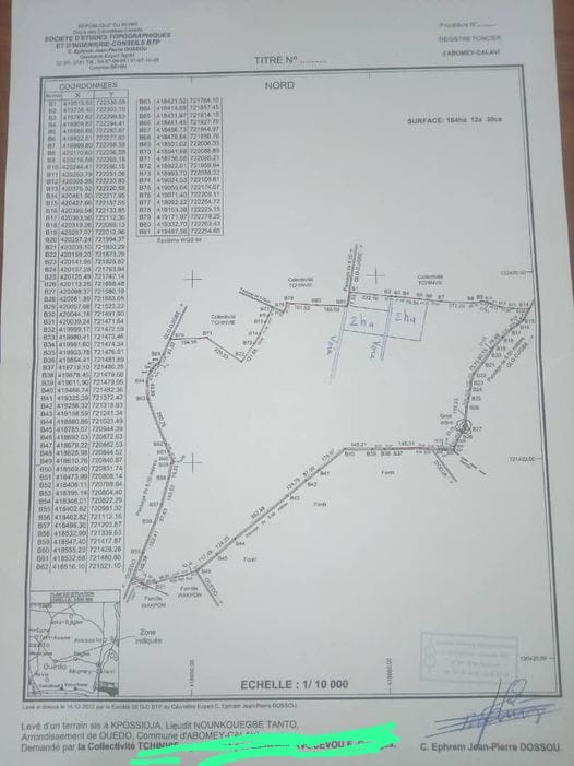 *DOMAINE DE 164 HECTARES A VENDRE A OUEDO DANS LA COMMUNE D’ABOMEY CALAVI* *Prix : 13 Millions/ hectares* Pour des raisons très urgentes une famille mets en vente un domaine de *164 hectares* dans l’arrondissement de ouedo/kpossidja a après le forêt # *9 km du goudron* disposant un d’une décision de justice *Prix : 13 Millions par hectare* *VENTE NOTARIALE* *Une parcelle de 500m² coûte au minimum 1, 2millions dans la zone* C’est une zone déjà habité.