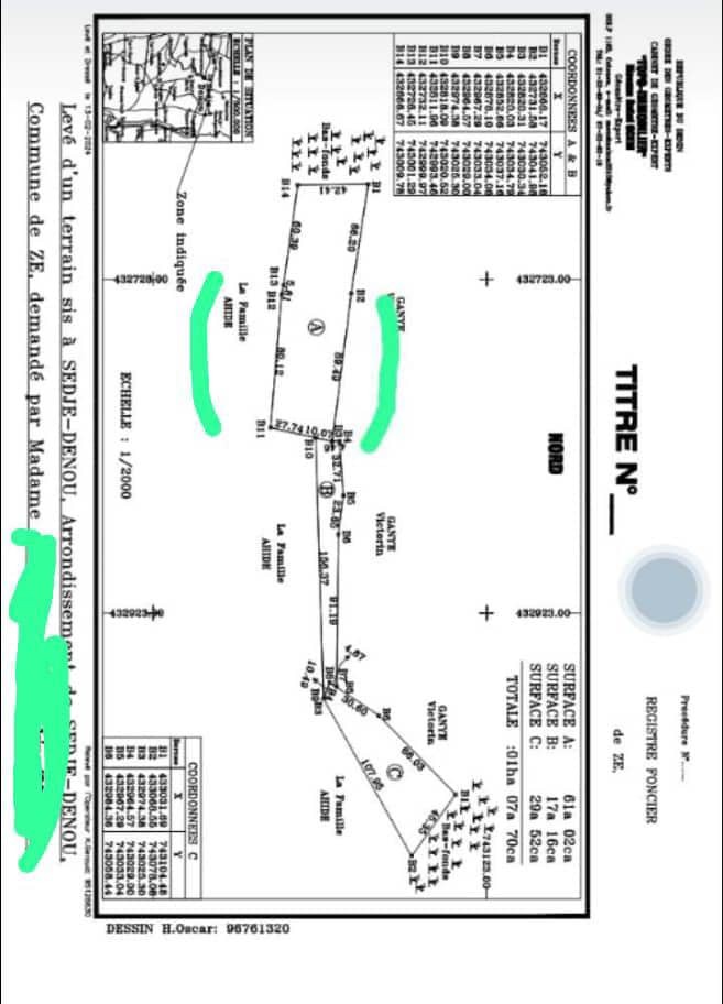 Opportunité de Fin d'Année - Terrain de 2500m² à Vendre à Zè 🌟 **Offre Urgente !** Un particulier met en vente, pour des raisons urgentes, un terrain de 2500 m² situé à Sèdjè Denou, dans la zone des cultures de manioc à Zè. ### 🌟 **Caractéristiques du Bien :** - **Superficie :** 2500 m² - **Emplacement :** Sèdjè Denou, Zè - **Documents :** - Convention de vente - Levé topographique - **Prix de Vente :** 3 millions F CFA (Négociable) ### 📍 **Emplacement et Environnement :** Ce terrain est situé dans une zone agricole dynamique, idéale pour des projets de culture, notamment de manioc. L’emplacement stratégique de Sèdjè Denou à Zè offre un cadre parfait pour développer des activités agricoles ou autres projets nécessitant un grand espace. ### 💡 **Points Forts :** - **Zone Agricole :** Parfait pour des projets de culture de manioc ou autres activités agricoles. - **Documents Disponibles :** Convention de vente et levé topographique assurent une transaction sécurisée. - **Prix Attractif :** Prix de vente fixé à 3 millions F CFA, avec possibilité de négociation. ### 🔖 **Prix :** Le prix de ce terrain est de **3 millions F CFA**, légèrement négociable. Profitez de cette opportunité unique d’investir dans un terrain de grande superficie dans une zone agricole réputée. Ne manquez pas cette occasion exceptionnelle de réaliser vos projets agricoles ou de développement à Zè. Contactez-nous dès aujourd'hui pour plus de détails et pour organiser une visite !