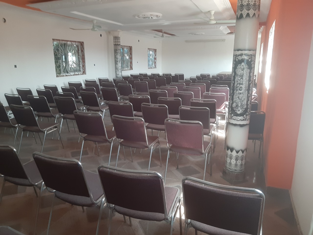 Mise en location à Aitchedji non loin du complexe scolaire Saint Félicité. une salle de fête ventilé et aéré d'une superficie approximative de 48m2 et pouvant accueillir 120 personnes. Loyer à 150.000 la journée Plus une commission de 30.000 pour l'agence.