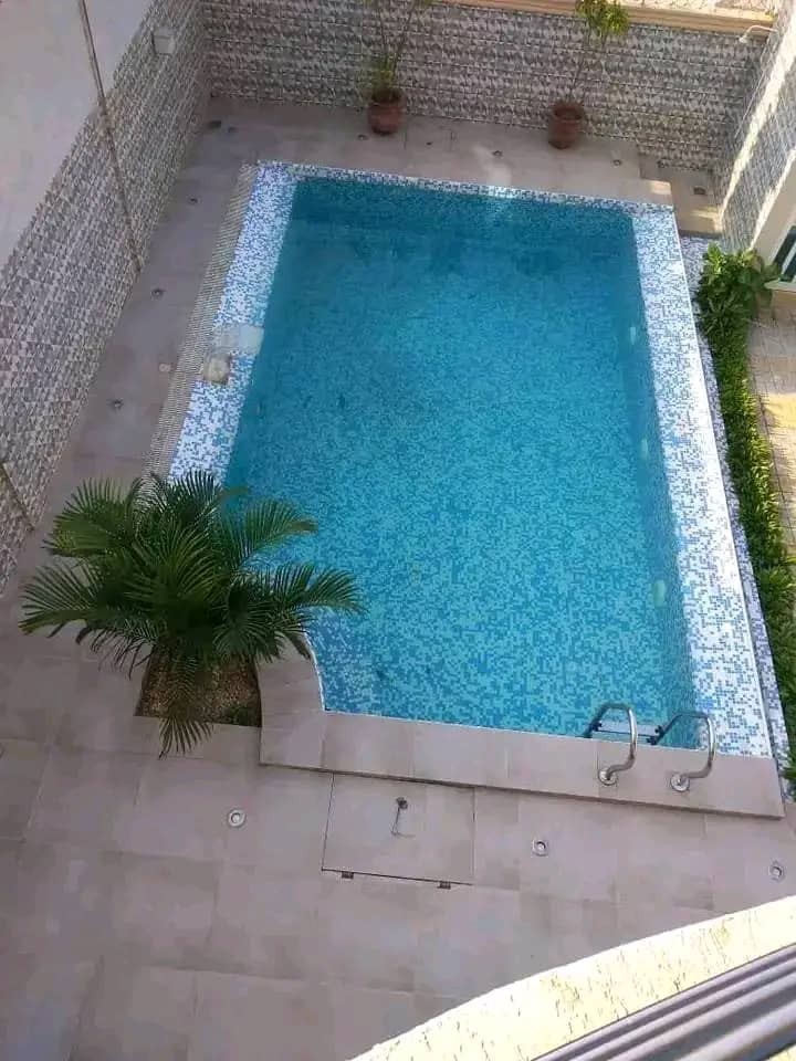 Disponible pour la location actuellement, une villa d'une superficie approximative de 400 m2 *meublée de 6 chambres* 2 salons et un Bureau avec piscine à fidjrossè calvaire. *Prix de location : 2.000.000 FCFA* Mise en vente également à : 450.000.000fcfa Long Séjour uniquement