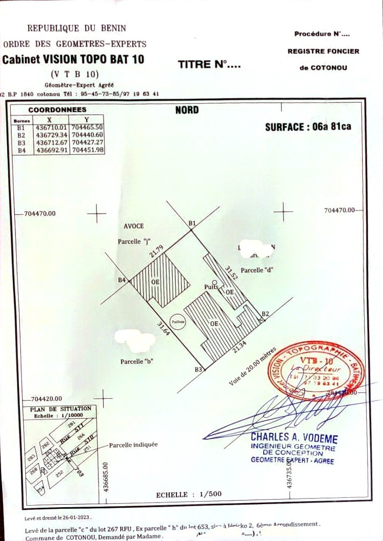 *COTONOU, PARCELLE SÉCURISÉE, JÉRICHO* 📌Une parcelle de superficie *681m²* contenant une vieille maison bien solide et habitée, située à JÉRICHO en *TROISIÈME POSITION DE LA VOIE PAVÉE* quittant le carrefour BIBE pour Aïdjedo. Composé de : -chambre salon fois 3 -deux chambre salon fois 2 - boutique fois 2 Elle est située non loin du carrefour St Michel, Marché Dantokpa, ... *une réelle opportunité en plein centre d'affaires de la ville de Cotonou* Titre de propriété : *Permis d'habiter* *Prix : 130 millions* DOSSIER DIRECT 🧏🏻♂️