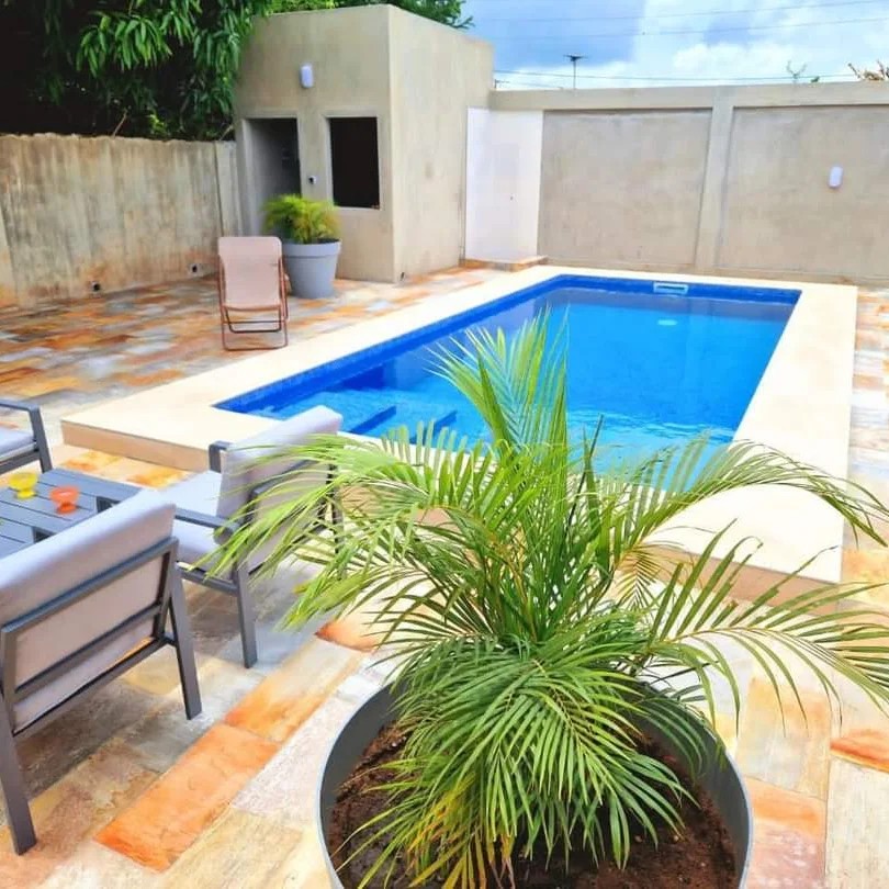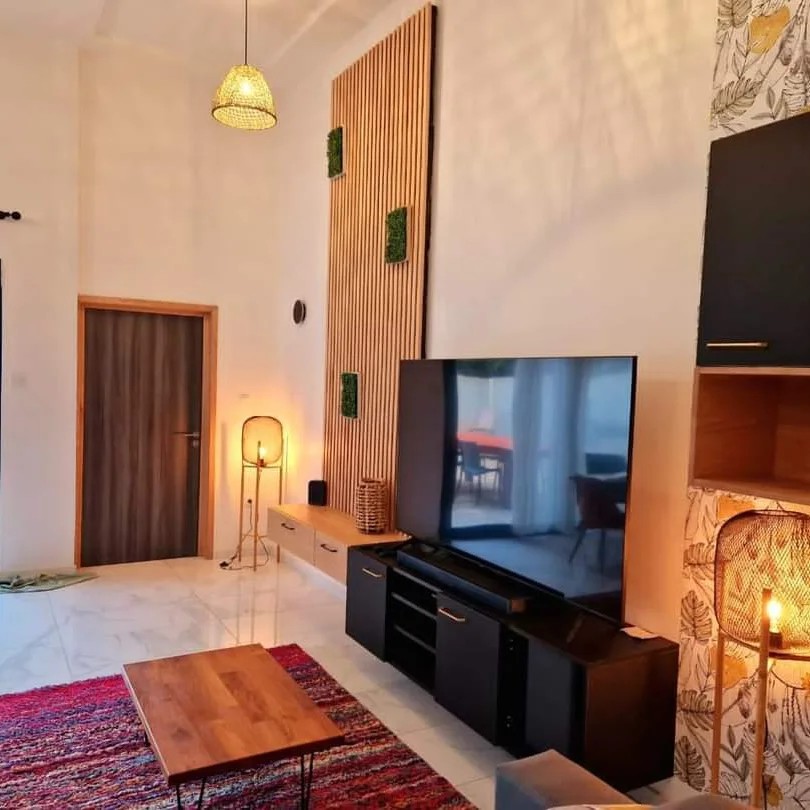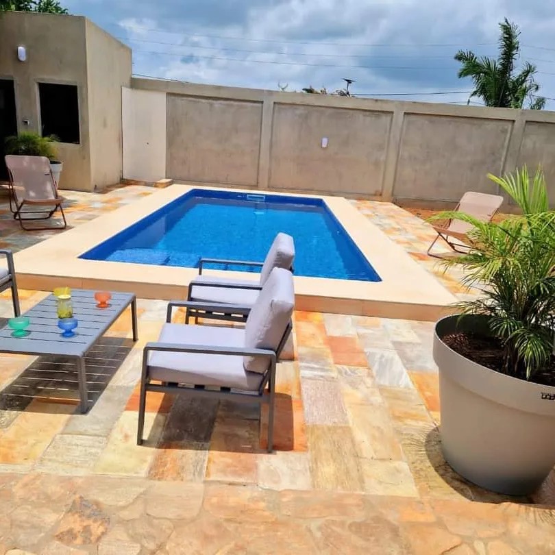 VILLA MEUBLÉE DE 2 CHAMBRES & SALON SANITAIRES À LOUER, ZOPAH - POLYCLINIQUE STE ÉLISÉE, CALAVI Il est mis en location une villa meublée de 2 chambres et salon sanitaires entièrement climatisés située à la 2ème position du nouveau goudron Zopah dans la rue de la Polyclinique Ste Élisée non loin du Restaurant Le Fouquet et du Complexe Hôtelier le Privilège à Calavi avec : ▪️2 chambres et salon sanitaires ▪️Dressing spacieux ▪️Chaque chambre avec sa douche intégrée ▪️Un système de chauffage installé ▪️Une douche visiteurs ▪️Une cuisine chic à l'américaine ouverte sur le salon ▪️Une machine à laver ▪️Systèmes solaires autour du jardin ▪️Une piscine moderne ▪️Espace barbecue ▪️Espace vert / Jardin ▪️Abonnement Canal+ ▪️Wi-Fi ▪️Une guérite sécuritaire ▪️Un agent de sécurité en permanence Tarif : 50.000 CFA / Nuitée Séjour minimum : 5 nuitées Contact // (+229) 61 22 63 85 C/292346185685547722636