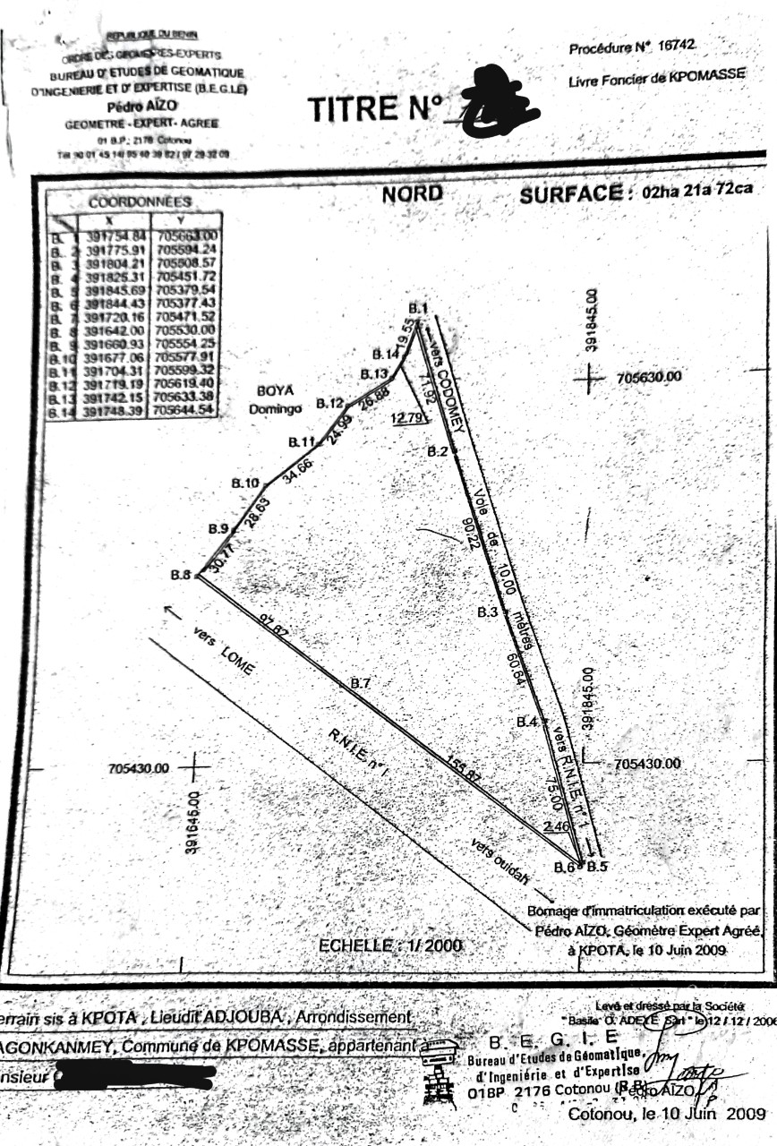 Un domaine de plus de deux hectares situé à kpota au bord du goudron ( route Inter-État Cotonou Lomé ) dans la commune de KPOMASSÉ. Ayant le titre foncier et mise en vente à 90.000.000fcfa par parcelle.